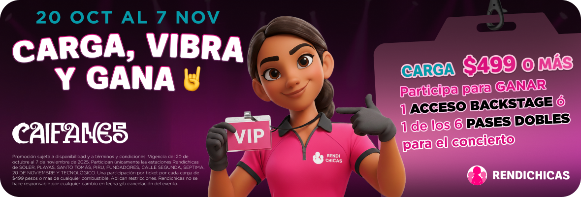 Promoción válida solo en la aplicación móvil Rendichicas. Para participar en CLUB RENDICHICAS o PLAN DE RECOMPENSAS RENDICHICAS REWARDS, es necesario realizar compras Válido en todas las estaciones de Rendichicas Obregón y Hermosillo Carga mínima 499 pesos o más. Escribe tus datos en el ticket y deposítalo en la urna. Vigencia del 9 de Octubre al 6 de Noviembre del 2025. Se elegirán los ganadores 7 de noviembre 2025 mediante control. Premios Obregón 8 jersey, 2 gorras, 10 boletos dobles bleacher, Hermosillo 4 jersey, 4 gorras 12 boletos pases dobles generales o bleacher sujeto a disponibilidad.MEGA O ULTRA) para la acumulación de puntos, promoción válida en Tijuana, Tecate, Rosarito, Mexicali y Hermosillo. Podrán participar en el Programa de Lealtad Club Rendichicas (Choferes Plataformas/Taxistas) y Rendichicas Rewards (Público en General). Para más información consulta nuestro aviso de privacidad y políticas.
