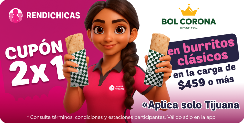 *Promoción valida al descargar APP , Para participar en CLUB RENDICHICAS o PLAN DE RECOMPENSAS RENDICHICAS REWARDS, es necesario realizar compras (MEGA O ULTRA) para la acumulación de puntos, promoción válida en Tijuana, Tecate, Rosarito y Hermosillo (excepto estación Salazar). Podrán participar en el Programa de Lealtad Club Rendichicas (Choferes Plataformas/Taxistas) y Rendichicas Rewards (Público en General). Para más información consulta nuestro aviso de privacidad y políticas.